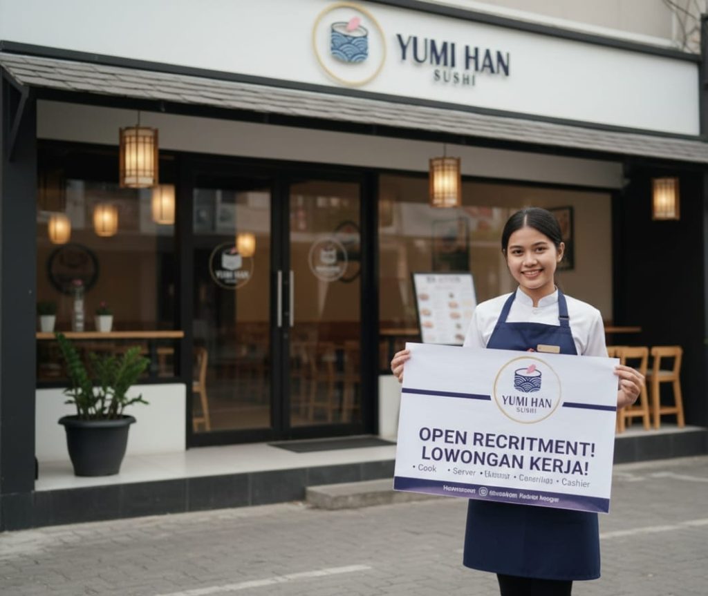 Home Karir Karir OPEN RECRUITMENT YUMI HAN SUSHI Memberi Kesempatan Bagi Anda untuk mengembangkan Karir Bersama Kami Kasir Restoran kualifikasi :Wanita usia 18-28 tahunpendidikan minimal SMk/SederajatPengalaman Kerja 0-1 tahunFresh Graduate silahkan melamarMampu megoperasikan mesin KasirBersedia bekerja pada hari Weekand, Tgl merah atau libur nasionalBersedia bekerja Shift (Shift 1 Pukul 10:00 s/d 16:00 WIB & Shift 2 Pukul 15:00 s/d 22:00 WIB)Bisa BerhijabKeterampilan: Kemampuan komunikasi yang baik, kemampuan bekerja sama dalam tim, dan kemampuan untuk bekerja di bawah tekananSikap dan Perilaku: Ramah, sopan, dan memiliki sikap yang positif LAMAR SEKARANG Waiter Waitress kualifikasi :Pria Wanita usia 18-28 tahunpendidikan minimal SMk/SederajatPengalaman Kerja 0-1 tahunFresh Graduate silahkan melamarBersedia bekerja pada hari Weekand, Tgl merah atau libur nasionalBersedia bekerja Shift (Shift 1 Pukul 10:00 s/d 16:00 WIB & Shift 2 Pukul 15:00 s/d 22:00 WIB)Bisa BerhijabKeterampilan: Kemampuan komunikasi yang baik, kemampuan bekerja sama dalam tim, dan kemampuan untuk bekerja di bawah tekananSikap dan Perilaku: Ramah, sopan, dan memiliki sikap yang positif LAMAR SEKARANG KITCHEN CREW kualifikasi :Pria Wanita usia 18-35 tahunpendidikan minimal SMk/SederajatPengalaman Kerja 0-1 tahunFresh Graduate silahkan melamarKemampuan: Mengolah makanan dengan baik dan higienisMengikuti resep dan instruksi chefMenjaga kebersihan dan kerapian dapurBersedia bekerja pada hari Weekand, Tgl merah atau libur nasionalBersedia bekerja Shift (Shift 1 Pukul 10:00 s/d 16:00 WIB & Shift 2 Pukul 15:00 s/d 22:00 WIB)Bisa BerhijabKeterampilan: Kemampuan komunikasi yang baik, kemampuan bekerja sama dalam tim, dan kemampuan untuk bekerja di bawah tekananSikap dan Perilaku: Ramah, sopan, dan memiliki sikap yang positif LAMAR SEKARANG